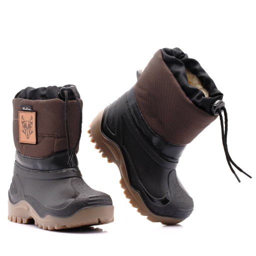 Bardzo ciepłe śniegowce dla dzieci, polskiej firmy MUFLON. Wykonane są z wysokiej jakości materiałów. Górna część cholewki zrobiona jest z ortalionu (zaimpregnowany materiał tekstylny), odporny na przemoczenie ze ściąganym kołnierzem zabezpieczającym przed dostawaniem się wody i śniegu do środka. Buty są ocieplone od wewnątrz naturalną 100 % wełną. Posiadają ocieploną wkładką z folii aluminiowej perforowanej, otoczonej od góry i dołu włókniną, dzięki czemu zachowuje doskonałe właściwości termoizolacyjne.