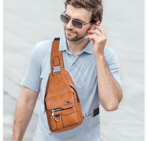 SKÓRZANY TORBA NA RAMIĘ MĘSKA NERKA PLECAK CROSSBODY BRĄZOWY
