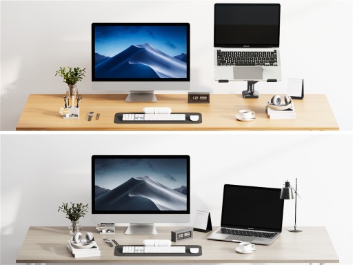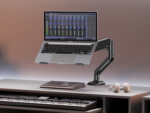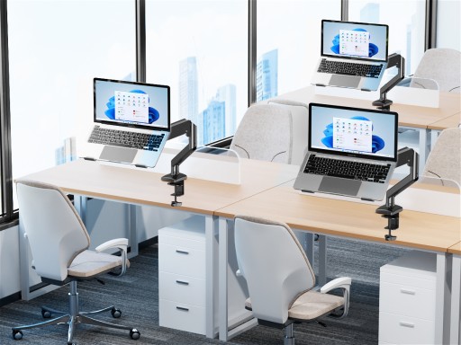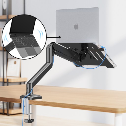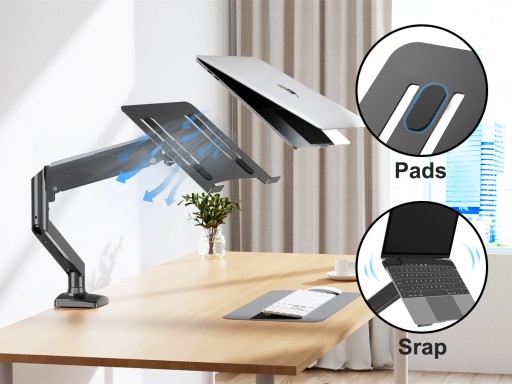 Regulowany mechanizm pozwala dostosować wysokość i kąt monitora lub laptopa.