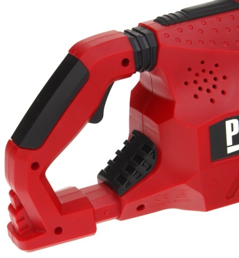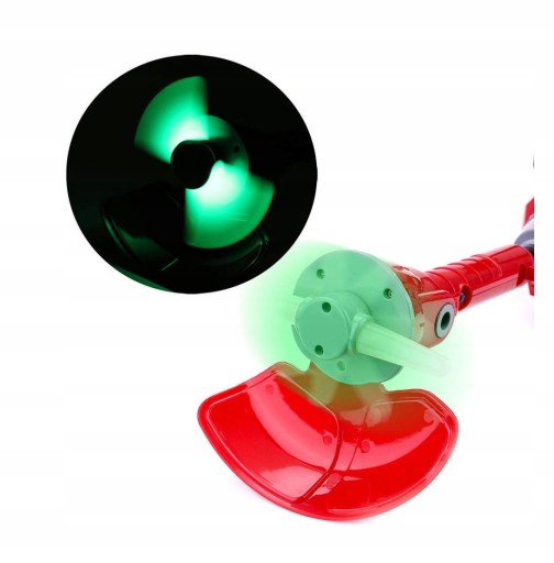 By zabawa była jeszcze fajniejsza, podkaszarka wyposażona została w efekty świetlne i dźwiękowe.