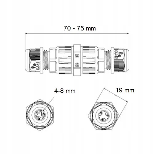 ✔️Mufa posiada najwyższą klasę odpornościową IP68 i jest wykonana z polimeru. W środku posiada gniazdo w którym możemy podłączyć przewody o przekroju od 0,75-2,5 mm2, a średnica przewodu może wynosić od 4 do 8 mm.