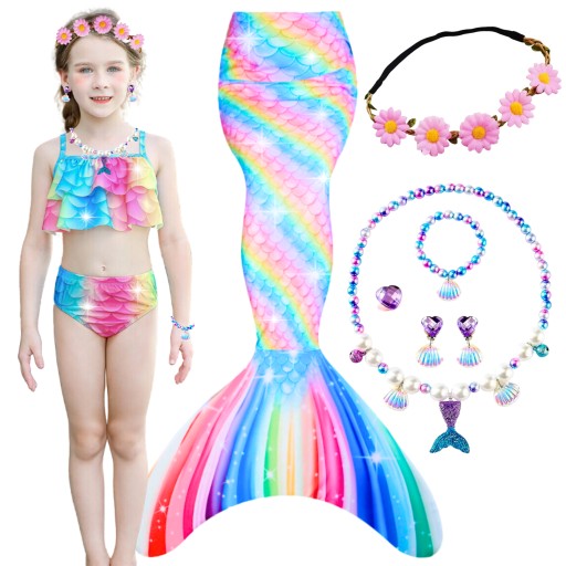 8w1 SYRENI OGON STRÓJ SYRENY KĄPIELOWY KOSTIUM ARIELKI DO PŁYWANIA 110 CM