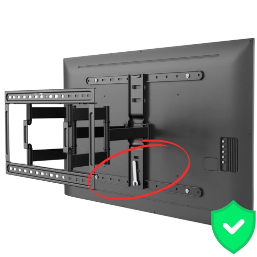 ➡️ Uchwyt wyposażony jest w śrubę zabezpieczającą, która uniemożliwia przypadkowe zsunięcie się telewizora. Dzięki temu masz pewność, że ekran pozostanie stabilnie na swoim miejscu.