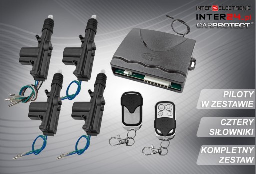 Zestaw wyposażony jest w dwa trwałe piloty z klapką zapobiegającą przypadkowemu naciśnięciu klawiszy co eliminuje możliwość niekontrolowanego otwarcia samochodu gdy znajdujemy się w pobliżu pojazdu oraz zapobiega rozładowywaniu się baterii podczas przypadkowego naciskania klawiszy np. trzymając go w kieszeni. Uniwersalne siłowniki o uciągu prawie 4,5 kg których konstrukcja umożliwia montaż praktycznie w każdym samochodzie.