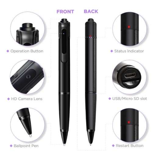 Długopis szpiegowski kryje w sobie bardzo małą, praktycznie niezauważalną kamerę, która bardzo dobrze komponuje się z konstrukcją długopisu. Pióro szpiegowskie zawiera również mikrofon, który umożliwia nagrywanie audio-wideo w dowolnym miejscu i czasie.