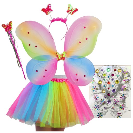* STRÓJ MOTYLKA MOTYL WRÓŻKA MOTYLEK TĘCZOWY skrzydełka 3-9lat WIOSNA