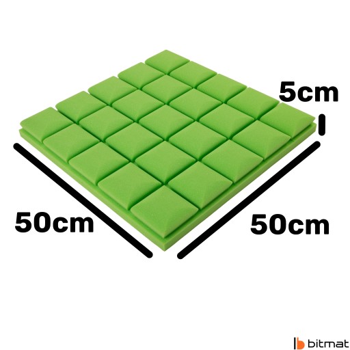 Cena dotyczy 1-sztuki pianki akustycznej Bitmat kostka wypukła w kolorze jasnozielonym.