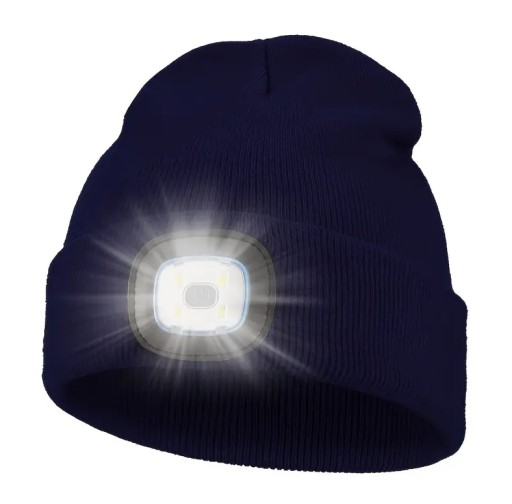ЗИМНЯЯ ШАПКА СО СВЕТОДИОДНЫМ ФОНАРЕМ, ПЕРЕЗАРЯЖАЕМЫМ USB, СИНИЙ МАРБА, ТЕПЛЫЙ СВЕТ