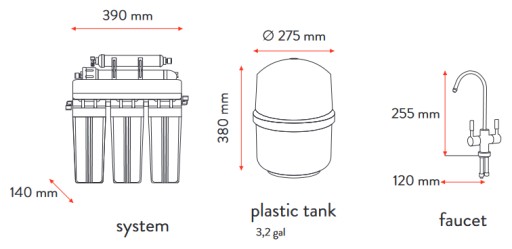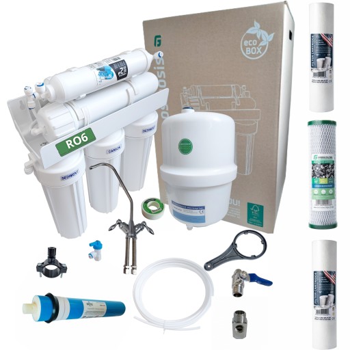 System Odwróconej Osmozy RO6 posiada trzy wkłady do wstępnej filtracji wody - sedymentacyjne, które oczyszczają wodę z rdzy, piasku i zawiesin oraz węglowy, który oczyszcza wodę z chloru, substancji organicznych oraz niektórych pestycydów. Dzięki zastosowaniu membrany osmotycznej, możliwe jest usunięcie do 99% wszelkiego zanieczyszczenia większych od 0.001 µm oraz niektórych wirusów i bakterii.