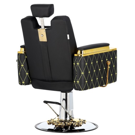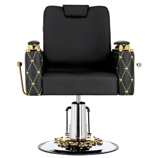 Fotel charakteryzuje się eleganckim i ergonomicznym designem, który pozwala na wygodną pracę fryzjera oraz relaks klientów.
