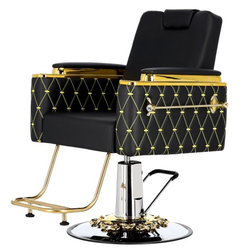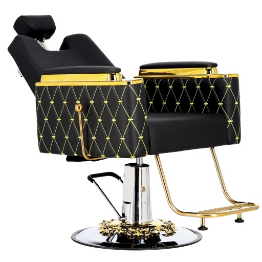 Fotel charakteryzuje się eleganckim i ergonomicznym designem, który pozwala na wygodną pracę fryzjera oraz relaks klientów.