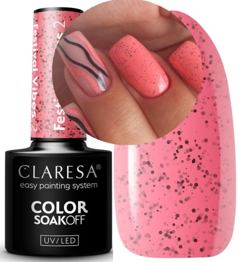 Festival Vibes 2 to niezwykle oryginalny odcień, łączący w sobie nuty pomarańczu, różu i koralu. Jest pełen optymizmu, energii i radości – czyli dokłądnie tego, czego potrzebujesz bawiąc się na wyczekiwanym festiwalu do białego rana! Pomaluj wszystkie paznokcie tym kolorem lub dodaj go jako element zdobień i ciesz się wyjątkową stylizacją paznokci przez długi czas.