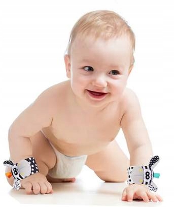 Kolorowe, wzorzyste i szeleszczące skarpetki oraz opaski z grzechotką to idealne zabawki dla najmłodszych pociech. Przyciągają uwagę dzieci, dzięki czemu chętnie sięgają swoich stópek i bawią się rączkami.
