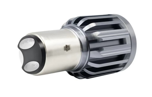Żarówka BA20D ze światłami mijania i drogowymi dzięki rozmieszczeniu ledów jak w tradycyjnej żarówce. Świeci dwa razy mocniej od tradycyjnej, co daje światło zbliżone do reflektorów ksenonowych.
