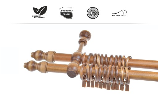 Karnisz Drewniany Podwójny w Kolorze Dąb Kompletny Naturalny 140 cm