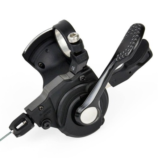RAPIDFIRE Plus - Zestaw RAPIDFIRE Plus został stworzony z myślą o szybkiej zmianie przełożeń, umożliwiając rowerzystom przełączanie o trzy przełożenia w dół (prawa manetka) za pomocą jednego ruchu ręką. Dźwignie te mają działanie dwukierunkowe, pozwalające na zmianę przełożenia przez pociągnięcie palcem wskazującym lub naciśnięcie kciukiem.