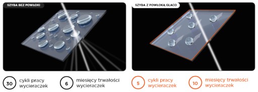 Dzięki technologii Glaco woda formuje się w małe krople, które są odpychane przez wiatr – koniec ze smugami i ograniczoną widocznością!