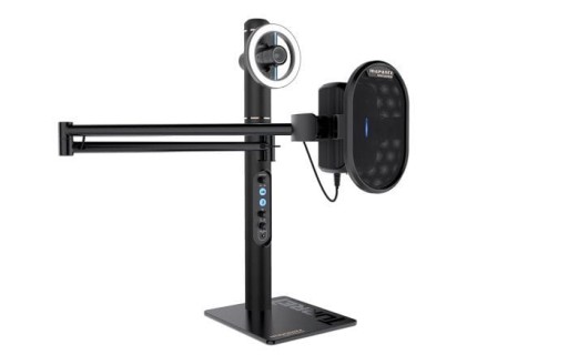 System transmisji video streaming oraz podcast, kamera full HD [kompresja H.264], mikrofon pojemnościowy USB z popfiltrem, funkcją mute i regulacją wzmocnienia, pierścieniowa lampa LED z filtrami, wzmacniacz słuchawkowy z regulacją, solidny statyw