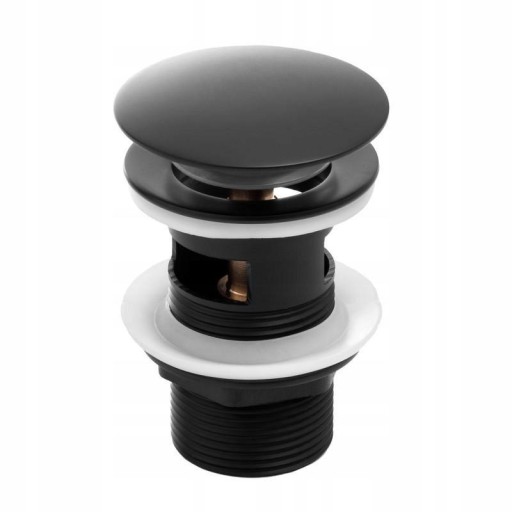 ⭐ Korek klik-klak automatyczny do umywalki z przelewem z mosiądzu, malowanego proszkowo na kolor czarnym.