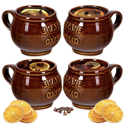Dobrze trzymają się ręce i mają dodatkowe ucho, które ułatwia picie gorącego napoju. Wszystkie kubki są glazurowane i mają wyłożony napis " Grzane wino".