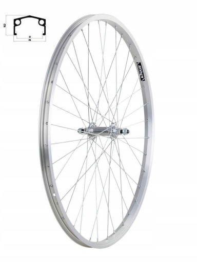 Przednie koło rowerowe w rozmiarze 24”, zbudowane z obręczy, piasty i 36 szprych. Aluminiowa obręcz zapewnia doskonałą wytrzymałość, odporność na uszkodzenia oraz odkształcenia spowodowane dużymi przeciążeniami. Gwarantuje wysoką efektywność, doskonałe osiągi oraz komfortową i płynną jazdę. Stalowa piasta z mocowaniem na śruby z nakrętkami w zestawie, połączona jest za pomocą 36 srebrnych szprych z obręczą, tworząc doskonałej jakości, sztywne i solidne koło. Dedykowane jest do rowerów głównie młodzieżowych i górskich, zapewniając bezproblemową pracę całego układu jezdnego jednośladu.