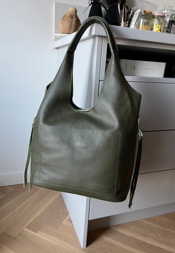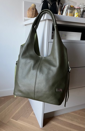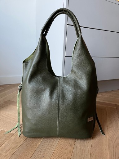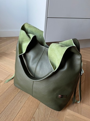 - Polska modna i poręczna skórzana torebka worek shopper wykonana z wysokogatunkowej miękkiej naturalnej skóry.