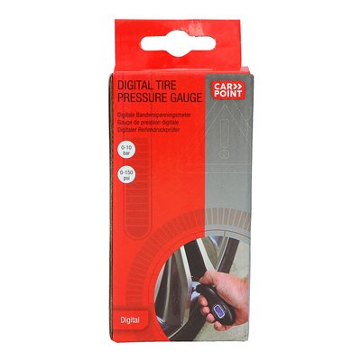 Zmierz ciśnienie w oponach za pomocą tego cyfrowego miernika ciśnienia w oponach Carpoint. Ciśnienie można mierzyć w barach (0-10), PSI (0-150), kPa (0-1000) lub kg/cm² (0-10). Czytelny podświetlany wyświetlacz LCD i podświetlana dysza. Miernik wyłącza się automatycznie 30-40 sekund po użyciu lub można go wyłączyć ręcznie, naciskając przycisk włączania/wyłączania przez trzy sekundy. Działa na trzy baterie guzikowe LR44.