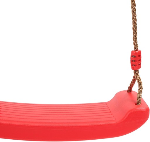 Siedzisko wykonane jest z mocnego tworzywa sztucznego, odpornego na promieniowanie UV, deszcz i niskie temperatury. Jego ergonomiczny kształt zapewnia wygodę i stabilność podczas użytkowania, co zwiększa bezpieczeństwo dziecka. Trwałe liny oraz solidne metalowe mocowania gwarantują stabilność i długą żywotność huśtawki.