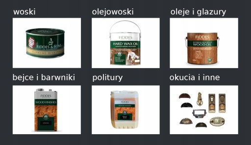 Jesteśmy wyłącznym importerem tradycyjnych materiałów do uszlachetniania drewna brytyjskiej firmy Fiddes & Son, która od ponad stu lat produkuje najwyższej klasy woski, oleje, olejowoski, barwniki do drewna i politury. Doświadczenie firmy w produkcji najwyższej jakości środków do pielęgnacji i ochrony drewna zaowocowało stworzeniem szerokiej oferty dla stolarzy, parkieciarzy, renowatorów oraz wszystkich zajmujących się zawodowo, jak też amatorsko pracą z drewnem. Nasze portfolio uzupełniają mosiężne oraz stalowe okucia meblowe przeznaczone do mebli klasycznych, antycznych, rustykalnych i również nowoczesnych.