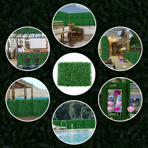 Nasza sztuczna zielona mata to nie tylko piękna dekoracja, ale także rozwiązanie do wielu celów. Może być wykorzystana jako dekoracja biura, osłona balkonu, maskowanie szpecących elementów otoczenia, ozdobna ściana za stołem młodej pary na weselu, dekoracja witryn sklepowych i wiele innych. Nieograniczone możliwości zastosowania naszej maty pozwolą Ci na stworzenie pięknej i praktycznej przestrzeni. Teraz możesz mieć zielony ogród w miejscu, gdzie nie ma na niego warunków lub po prostu urozmaicić swoją przestrzeń dzięki naszej sztucznej zielonej maty.