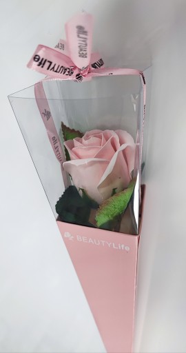 Róża mydlana w ozdobnym różowym rożku to znakomity prezent dla nauczyciela, na imieniny, urodziny, walentynki, dzień kobiet, dzień matki...który sprawi obdarowanej osobie mnóstwo pachnącej radości...