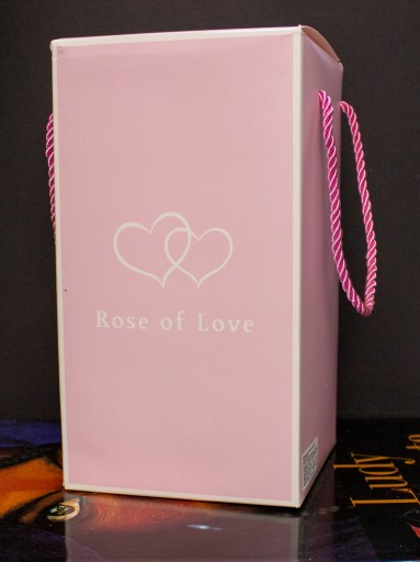 Ta precyzyjnie zrobiona róża, symbol miłości, została umieszczona w szklanej, pięknej kopule, przez którą widać cały czas jej piękno, nawet po ciemku, gdyż rozświetla ją 20 światełek LED , którymi jest oplatana.