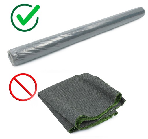 - Otrzymujesz sztuczną trawę w rolce, runem do wewnątrz. Im dłuższe runo, tym większe prawdopodobieństwo, że będzie ono nieco spłaszczone po rozwinięciu.