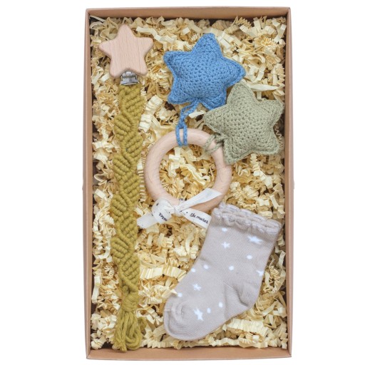 2. Grzechotka mini gwiazdeczki: szałwiowo/ beżowy