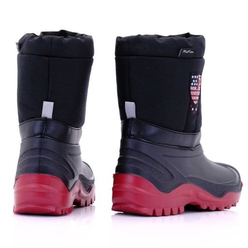 Bardzo ciepłe śniegowce dla dzieci, polskiej firmy MUFLON. Wykonane są z wysokiej jakości materiałów. Cholewka zrobiona jest z wodoodpornego ortalionu ze ściąganym kołnierzem zabezpieczającym przed dostawaniem się wody i śniegu do środka. Buty są ocieplone od wewnątrz naturalną 100 % wełną. Posiadają ocieploną wkładką z folii aluminiowej perforowanej, otoczonej od góry i dołu włókniną, dzięki czemu zachowuje doskonałe właściwości termoizolacyjne.
