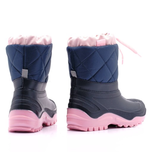 Bardzo ciepłe śniegowce dla dzieci, polskiej firmy MUFLON. Wykonane są z wysokiej jakości materiałów. Górna część cholewki zrobiona jest z ortalionu (zaimpregnowany materiał tekstylny), odporny na przemoczenie ze ściąganym kołnierzem zabezpieczającym przed dostawaniem się wody i śniegu do środka. Buty są ocieplone od wewnątrz naturalną 100 % wełną. Posiadają ocieploną wkładką z folii aluminiowej perforowanej, otoczonej od góry i dołu włókniną, dzięki czemu zachowuje doskonałe właściwości termoizolacyjne.