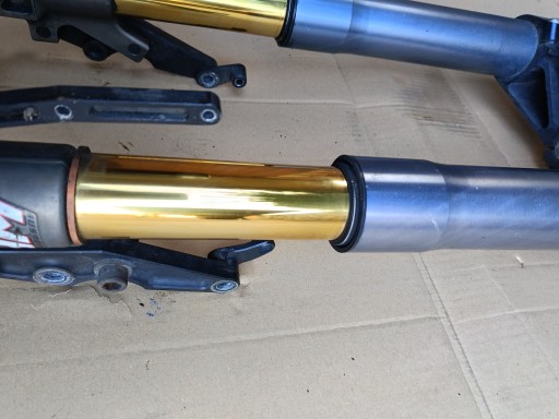 Witam, sprzedam przednie zawieszenie do Yamaha r1 rn01 98-00r. Lagi jaki półki są proste gładź bez rys czy innych uszkodzeń . Zawieszenie jest w 100% sprawne, proste gotowe do montażu. Cena dotyczy lag wraz z kompletem półek i ośką oraz kpl kierownic. Do wymiany uszczelniacze. Zawieszenie pochodzi z wersji Torowej.