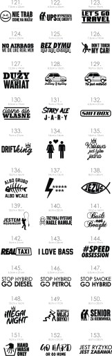 Naklejka na auto szybę Naklejki Wlepki Śmieszne *201 Wzorów *Kolory Bez Tła