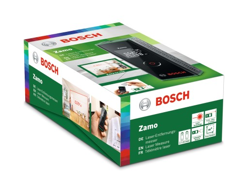 Poręczny dalmierz laserowy Zamo oferuje precyzyjne i łatwe pomiary. Jego technologia laserowa gwarantuje wysoką dokładność. Zamo umożliwia także korzystanie z trzech praktycznych, opatentowanych przez firmę Bosch adapterów do wielu zastosowań: adapter: koło pomiarowe, adapter: taśma pomiarowa i adapter: poziomnica. Dla łatwiejszej obsługi urządzenie jest wyposażone w jeden przycisk, którym można komfortowo mierzyć odległości w pomieszczeniach, w zakresie do 20 m, i obliczać powierzchnie przy takich pracach jak malowanie, tapetowanie czy pomiary przy wyposażaniu wnętrz w meble, półki lub dzieła sztuki.
