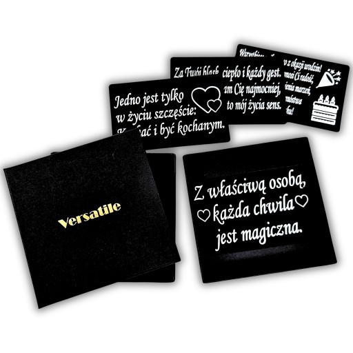 Chcesz, aby Twój upominek był naprawdę wyjątkowy? Wykonamy dla Ciebie spersonalizowaną dedykację na czarnej lub złotej tabliczce umieszczonej w środku eleganckiego pudełeczka Versatile – zupełnie gratis! ❤️