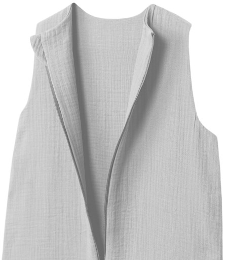 Muślin double gaze to miękka i delikatna tkanina, idealna dla wrażliwej skóry dzieci. Śpiworek wykończony jest mięciutkimi i elastycznymi ściągaczami w kolorze jasnoszarym, które idealnie dopasowują się do nóżek dziecka.