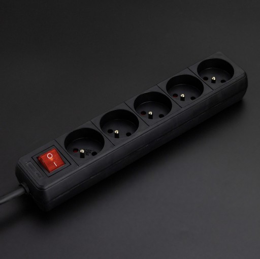 PRZEDŁUŻACZ Listwa Zasilająca 5 GNIAZD CZARNY UZIEMIENIE WŁĄCZNIK JAKOŚĆ