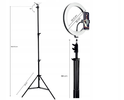 Lampa pierścieniowa RING 30 cm ze statywem 210 cm