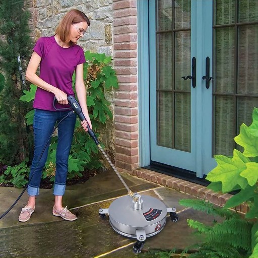 Profesjonalna szczotka do czyszczenia tarasów, patio i kostki brukowej, stworzona z myślą o urządzeniach wysokociśnieniowych o przepływie wody od 450 l/h do 1800 l/h.