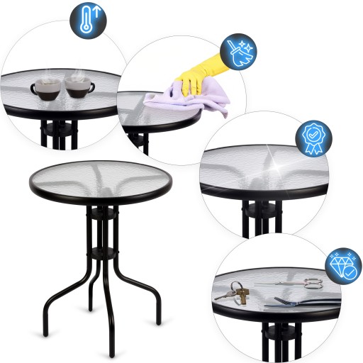✅ Trwałość i odporność na warunki atmosferyczne – blat wykonany z hartowanego szkła, a konstrukcja ze stali nierdzewnej gwarantują wytrzymałość na deszcz, promieniowanie UV i zmienne temperatury.