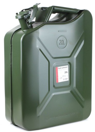 Metalowy kanister przeznaczony do przewożenia i przechowywania różnego rodzaju cieczy. Wykonany ze stalowej blachy, dwustronnie malowany proszkowo, dzięki czemu charakteryzuje się wysoką odpornością na korozję oraz warunki atmosferyczne. Wyposażony jest w uszczelkę umieszczoną pod korkiem oraz ocynkowaną zawleczkę w kształcie "L" jak dodatkowe zabezpieczenie. Kanister posiada certyfikację UN co pozwala na bezpieczne przechowywanie wszelkich paliw w tym benzynę i olej napędowy.
