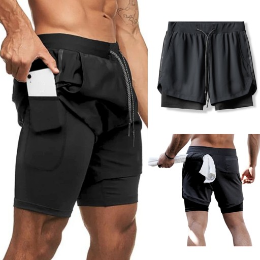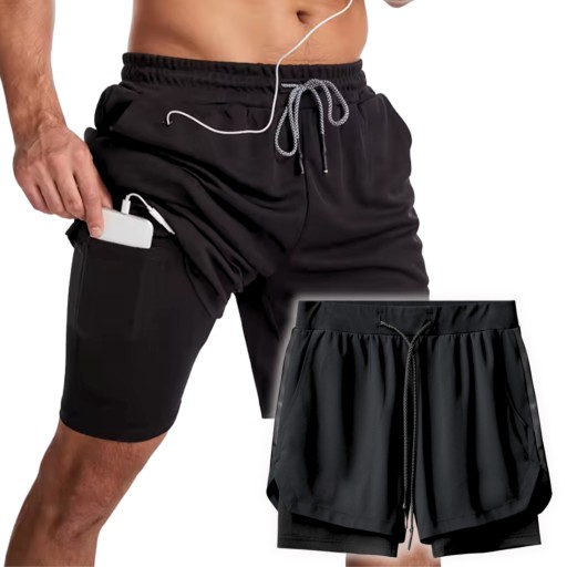 ODDYCHAJĄCE DWUWARSTWOWE SPODENKI MĘSKIE CZARNE L⭐⭐⭐⭐⭐