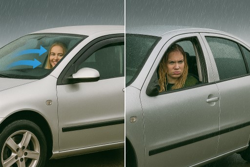 - Owiewki nie wymagają wiercenia ani klejenia — to montaż bezinwazyjny.