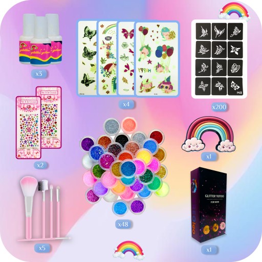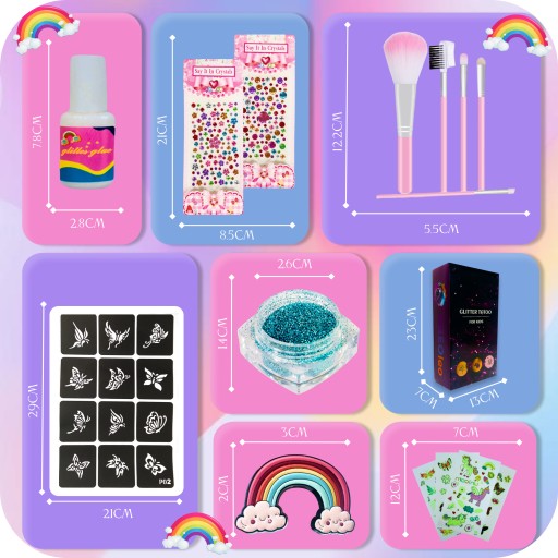 Pozwól im zanurzyć się w świecie fantazji i kreatywności z naszymi bezpiecznymi i kolorowymi brokatowymi tatuażami.