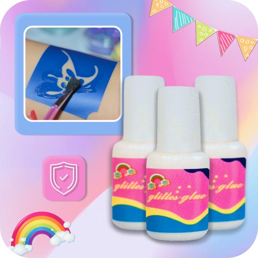 - 3 butelki kleju do brokatu: Bezpieczny i łatwy do użycia, idealny do tworzenia brokatowych tatuaży.
